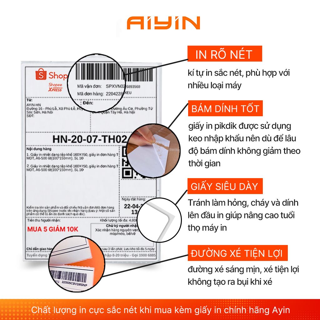 - Máy in đơn hàng tiêu chuẩn A7 tới các loại tem nhỏ tem mini code, Barcode, QR code, Tem phụ size 6x4cn, 5x5cm, 5x3cm, 35x22mm...
