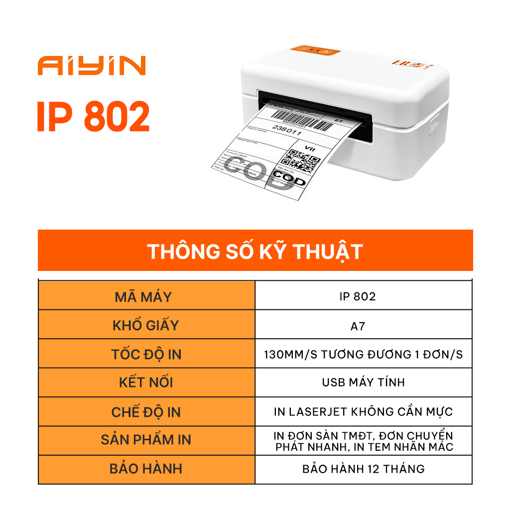- Tốc độ in: 130mm/s (1 giây 1 đơn hàng).