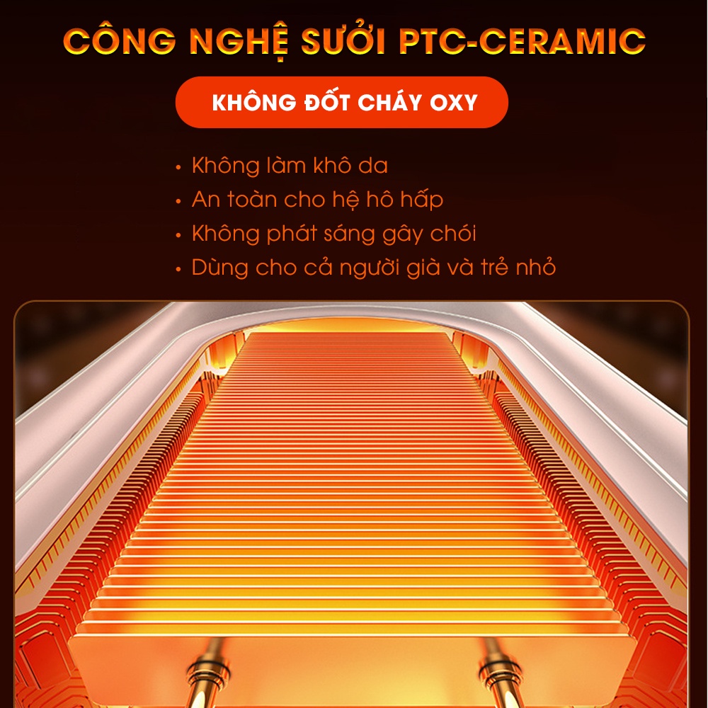 -Sử dụng công nghệ gốm PTC ( Ceraminc ) để làm nóng giúp tiết kiệm được 50% điện năng so với các loại quạt sưởi khác