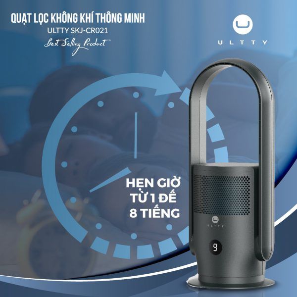 Quạt lọc không khí Ultty sử dụng cho phòng có diện tích lên đến 35m2, không khí được đối lưu 5 lần/giờ