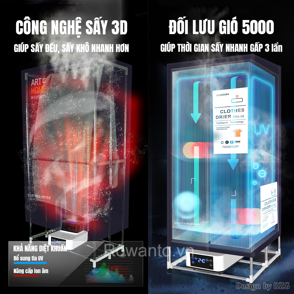 Rowanto S6 Plus được thiết kế ngoài chức năng để sấy quần áo, có thể sử dụng như một chiếc tủ đựng quần áo độc lập để chống bụi bản, côn trùng…